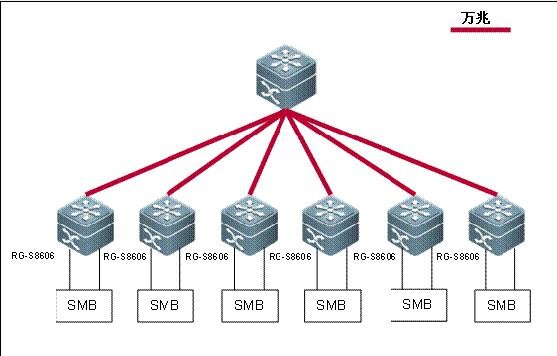 这里主要测试CPP抗攻击的能力。测试数据流用SMB产生,选取得观察点为图中最右边的RG-S8606,每台RG-S8606的配置为: