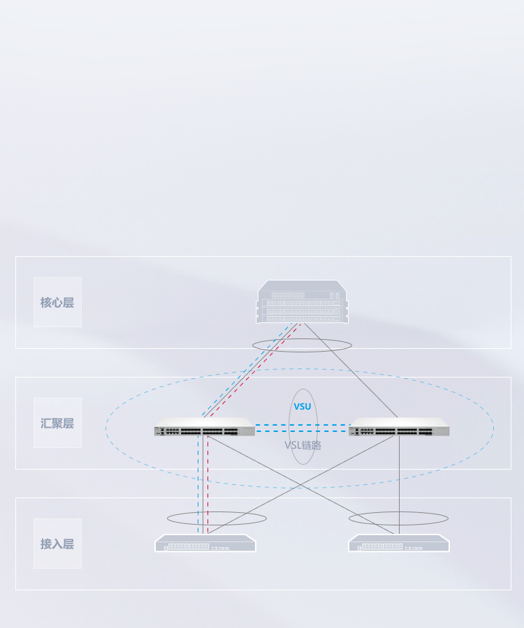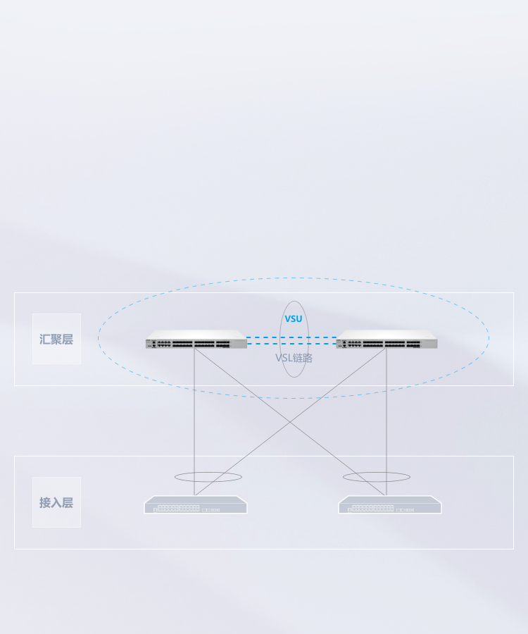 VSU和外围设备通过聚合链路连接如遇故障,可毫秒级切换链路,保证网络不间断