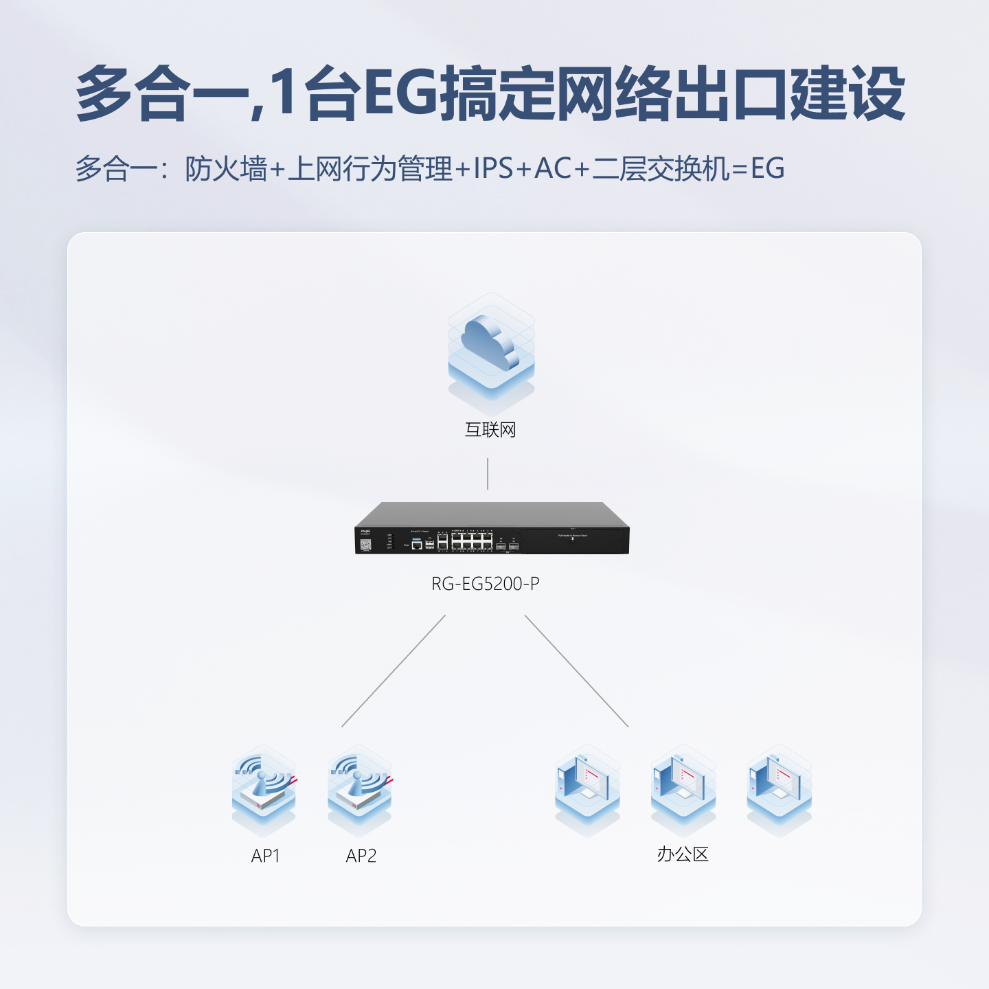 多合一:防火墙+上网行为管理+IPS+AC+二层交换机=EG